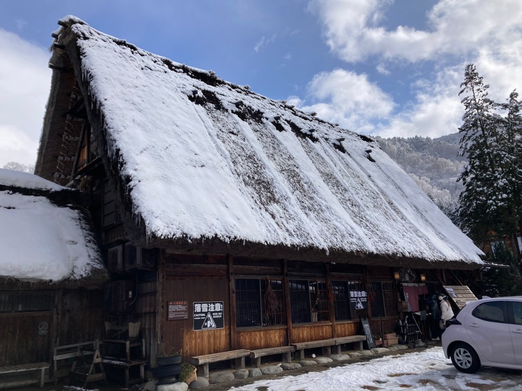 抵達合掌村的交通方式有自駕和巴士兩種,因為對於雪地駕駛不熟悉,毅然決定搭乘交通巴士前往。