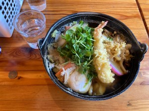 - 河口湖北面附近的餐廳基本上只營業到午餐時間,晚餐除了旅舍內售有泡麵、垃圾食物、對面 Bar 販賣的小甜點外,沒有東西可以吃了。建議大家在河口湖站附近的便利超商先買好東西,再帶回民宿自己煮。