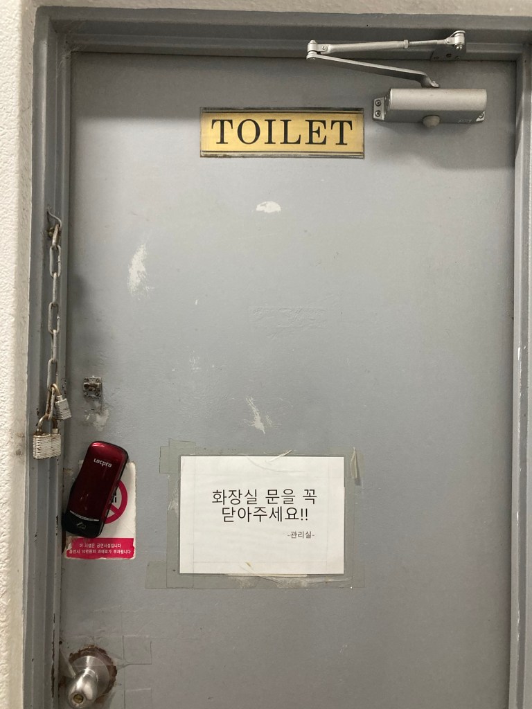 或者需要到店外的廁所:向店家詢問店外廁所的密碼、抵達廁所按密碼鎖解碼,就能進去上廁所了。解密碼上廁所的情況我在韓國經歷了四次,對我而言是非常特別的體驗,也珍惜台灣有許多提供廁所的店家。