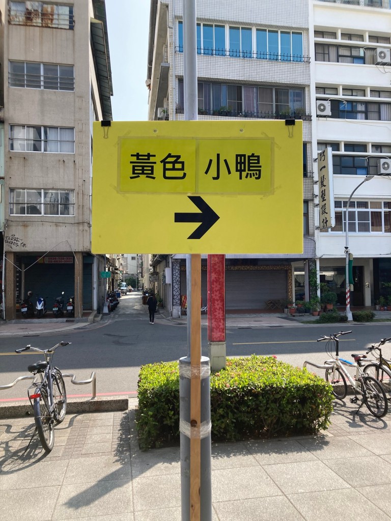 接著搭乘捷運前往鹽埕埔站,1 號出口出來就能看到大大的黃色指標,指引我們前往黃色小鴨會場。