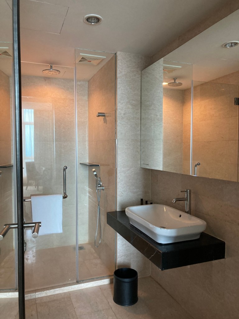從入住到退房,我對於惠勝酒店的住宿體驗留下了很棒的印象。這次選擇的雙人床房型非常寬敞舒適,一進門就有獨立沙發和電視的空間,宛如小客廳一般,床也相當柔軟舒適,浴室設備齊全、整潔乾淨,讓我在疲憊的旅途中得到了良好的休息。