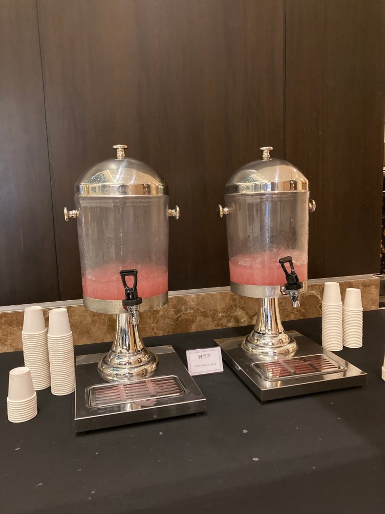 一進門迎接我的就是寬敞華麗的大廳,提早抵達的旅客可以先辦理行李寄放,等待的同時可以在大廳的座位上小小歇息,飯店也很貼心的準備了迎賓果汁供大家享用。