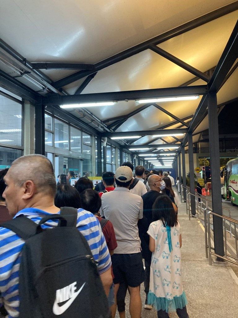 第二個閘口是新加坡入境檢查,這時候所有的物品都要帶下車,包括隨身行李、行李箱等等,然後排隊過海關。