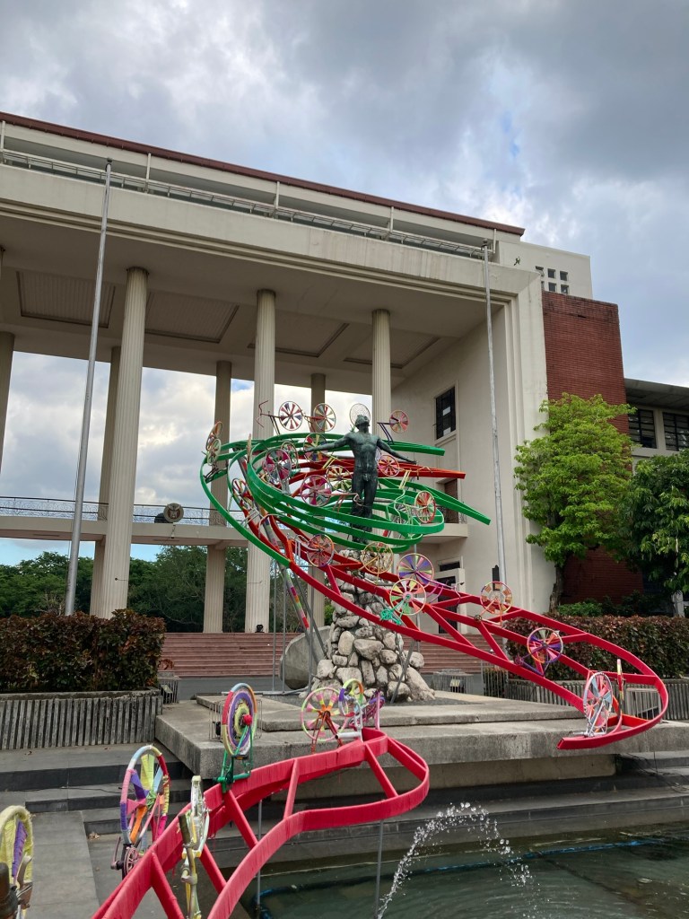 另一個很特別的是學生會在校園裡掛滿布條,針對各種議題作表態,舉例這裡的一個大眾交通運輸:吉普尼(Jeepney),政府方希望能夠汰換這種運輸工具,學生則認為這是許多人重要的日常交通工具,希望政府改良這項工具,而不是直接的汰換,於是就把訴求寫在布條上、掛在校園裡。