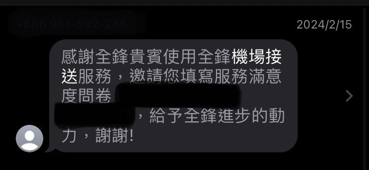以上就是我從 2023-2025 幾次使用心得,整體來說,全鋒汽車的機場接送服務給我留下了相當好的印象。無論是在預約過程中的便捷性、簡訊確認中的即時性,還是實際接送過程中的專業與舒適,都讓我感到非常滿意。