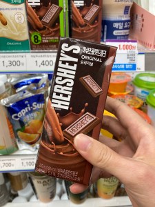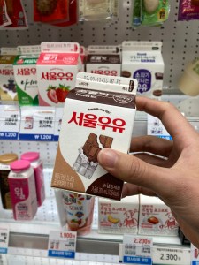 因為有個很愛巧克力的朋友,受她的影響特別深,到韓國超商買早餐,不知道飲料要買什麼的時候,順手就拿了一盒巧克力牛奶。