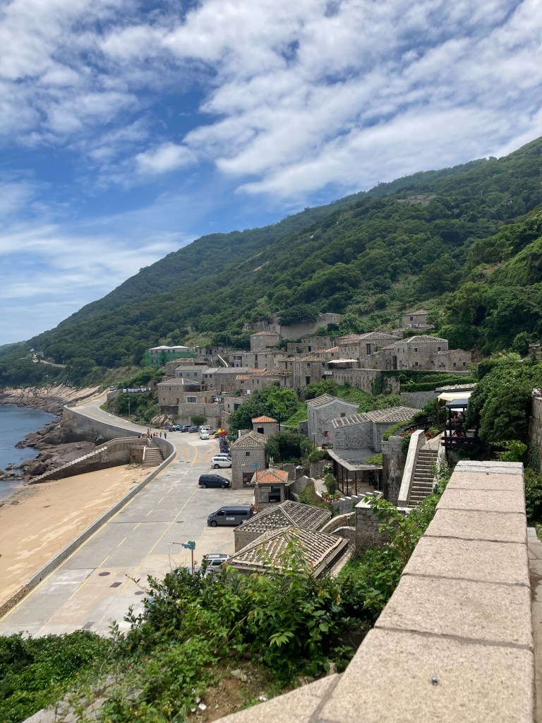 享用完老酒麵線以後,順著往下走,就可以抵達芹壁聚落,在海邊沿著地形起伏築起一間一間的石頭房子,大白天看去,像是沙堡、也像積木一般,亂中有序、十分有特色。
