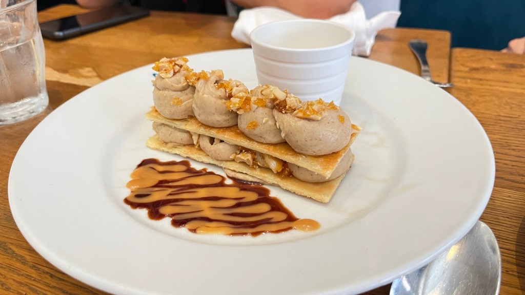 也許是初來乍到的關係,不得不說,這家法國傳統菜餐廳也是每項料理都令人驚艷。從前菜:鮭魚、烤肉、羊乾酪、菜薊,到主餐:油封鴨、牛排、牛絞肉塔,以及甜點:巧克力、蒙布朗、檸檬塔,甚至看似隨性附上的免費鮮奶油,也相當可口。