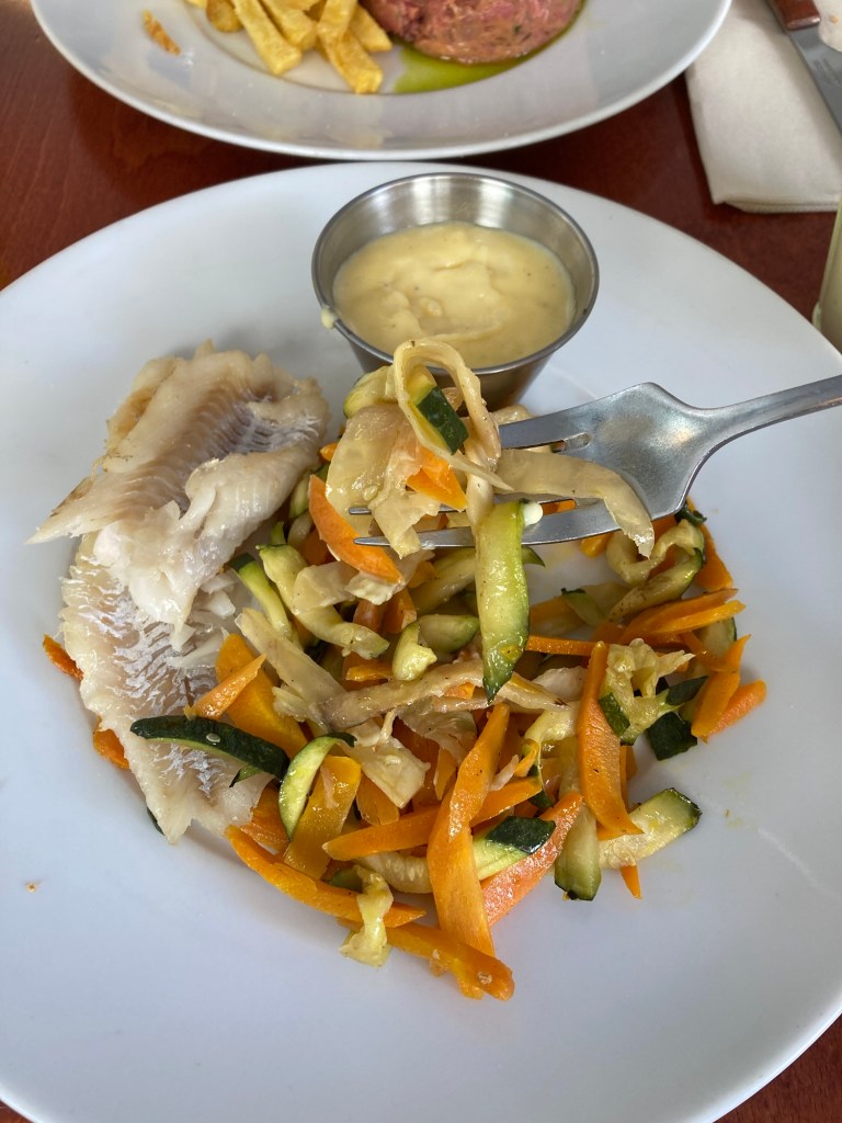 我點了一份季節魚、時蔬料理,還額外加點了提拉米蘇套餐,自覺主餐還不錯,甜點則是好吃到升天!!(下回應該會為了甜點再訪)