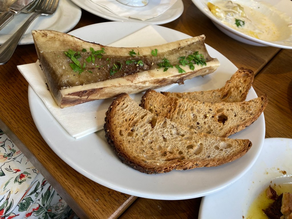 果不其然,從上菜的那一刻起,我對每個品項的稱讚就沒有停止過,不論是前菜:義大利湯餃、羅勒蝸牛、牛骨髓、鴨肝、洋蔥湯,到我們各自的主菜:油封鴨、鴨胸、鴨三明治,抑或甜點:花生千層、烤布蕾,每一樣都各有千秋、令人讚不絕口。