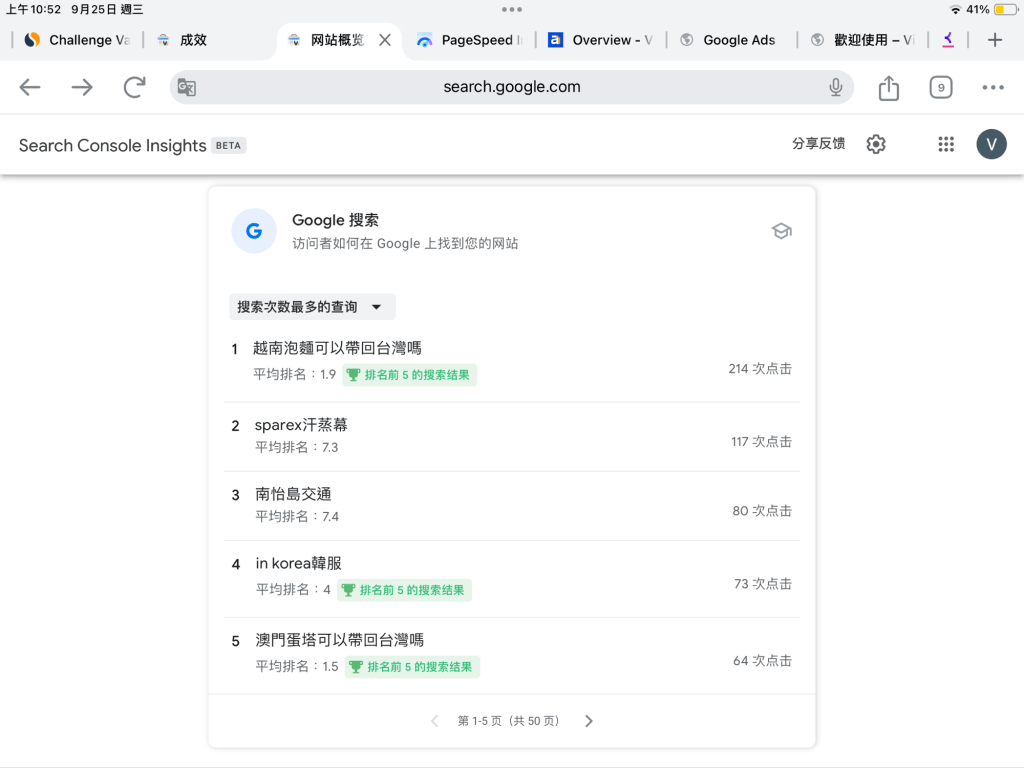 在 78 篇文章裡,有 14 篇被排在前 5,大約 18% 的文章受到搜尋引擎的認可,同時獲得較高的點擊機率,相比上一季成長 8%。