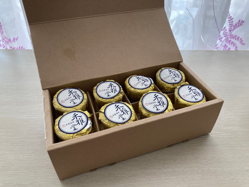 禾雅堂的輕乳酪蛋糕口感柔滑、輕盈不膩,入口即化與淡淡的乳酪香,讓人不禁一口接一口。除了味覺上的享受,方正的長條塊狀,表層是火侯拿捏恰到好處的深咖啡,包裹其內的淺黃輕乳酪,也讓人看了便垂涎三尺。