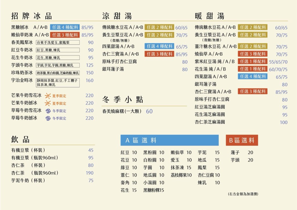 關鍵字: 春美冰果室, 台北冰品, 台北刨冰, 古早味刨冰, 台北美食, 春美冰果室菜單, 春美冰果室價格, 台北旅遊, 台灣美食, 懷舊冰店
