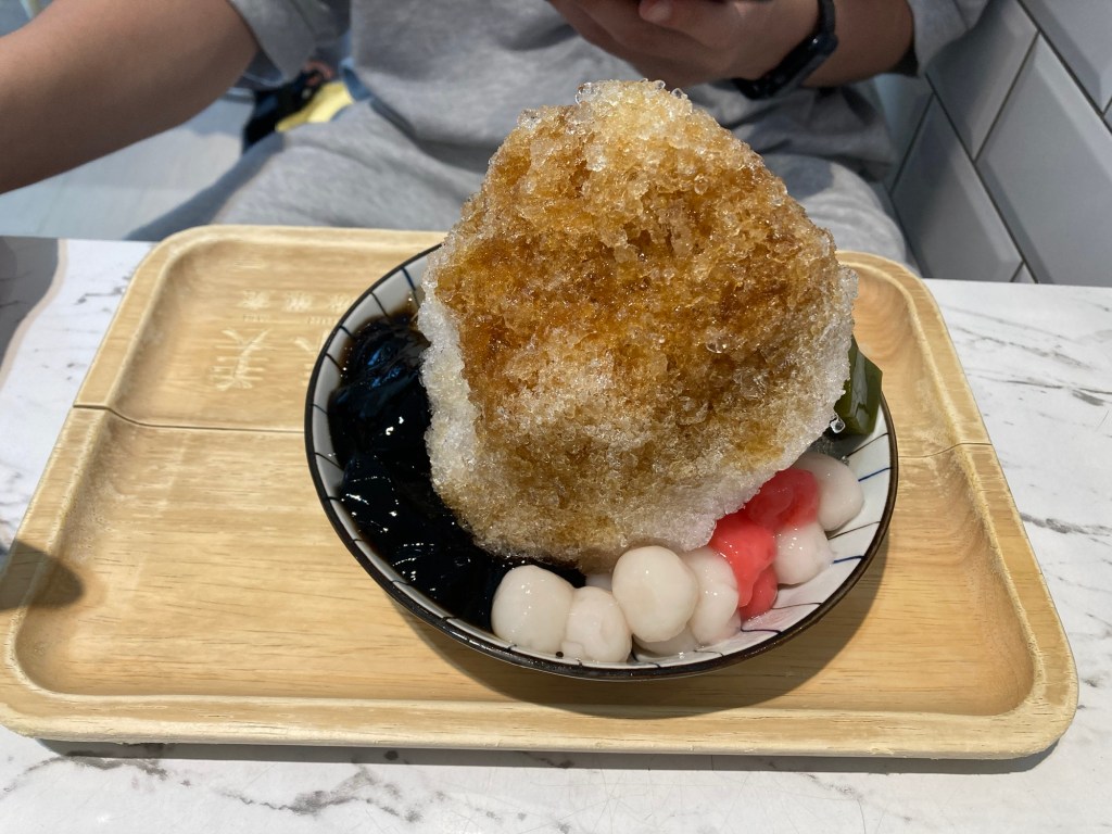 大約排了 15 分鐘便入座用餐,這裡的冰品種類豐富,大家在等待的時候,不妨先花時間看一下菜單,我們分別點了珍珠奶茶冰和黑糖刨冰。