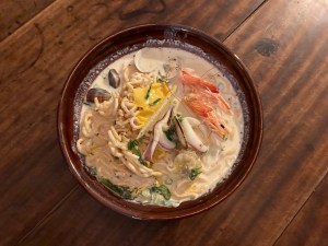 配料部分:蝦子、蛤蜊、花枝、豬肉都有,不過海鮮表現偏中規中矩,稍微缺了點記憶點。但整體不影響這家店的核心魅力——就是那份對風味的堅持與不怕冒險的創意精神。