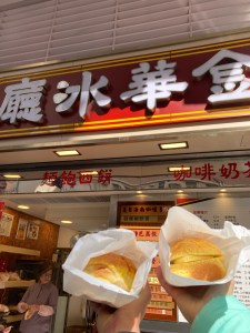 店裡也有提供內用座位,不過我們還有其他地方要去,就決定邊走邊吃,在外頭向店家點餐,不稍多少時間,兩個菠蘿油就好了(一個台幣 56 左右)。