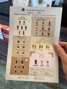 除了常見的泰奶、泰奶綠以外,這裡還可以加購配料、並售有花茶系列(相當誠實的註明可能有輕瀉作用),以及期間限定的蛋捲冰淇淋,要不是待在香港的時間太短,我會想要多方嘗試,不過這個小遺憾,就留待我下回到訪的時候,再來彌補吧(握拳)!