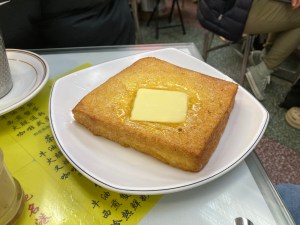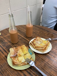 剛下飛機、飢腸轆轆的我們,各自點了一份奶茶、西多士,奶茶味道不錯、茶濃奶香,就如同記憶中的香港奶茶,可惜西多士表現一般,還有一點油耗味,沒有太大的記憶點。
