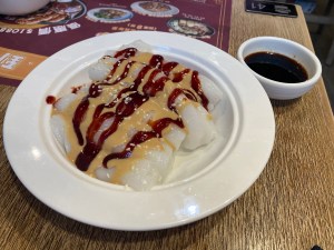 另外是黑金流沙包,表現不錯,包子皮口感恰到好處,不會太搶戲。川燙時蔬就沒有什麼太大的亮點,當初點這道菜,也只是為了補充一點膳食纖維。最後是腸粉,當初對這道菜抱有蠻大的期待,也許是因為裡面沒有加料的關係,吃久了感覺有點膩,下回不會再點。