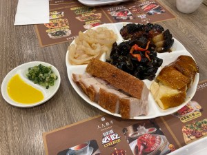品嚐心得:燒鵝還是要點下庄呀!上庄的部位肉比較多,但是吃起來就柴柴的,不像腿肉那樣多汁軟嫩。燒味併盤我最喜歡的是肥腩叉,因為油脂夠多、滷汁夠味,吃起來很爽,朋友最喜歡的則是醬油雞,有點像是台灣蔥油雞的概念,也不錯。
