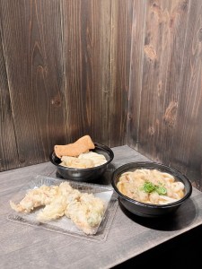 我們各點了冷、熱牛蒡天婦羅烏龍麵,以及雞肉天婦羅和甜豆皮。