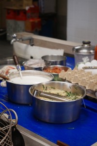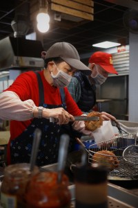 在那場熱血球賽開始前,導遊我先帶領姊姊們進行了一場胃袋的「熱身」。我們來到運動中心隔壁、充滿在地煙火氣的介壽市場。早晨的市場是馬祖最有生命力的地方,我們點了滑溜順口的鼎邊銼,湯頭清甜帶著海味;再來一份剛出爐、外皮金黃酥脆的「虫弟餅」,咬下去滿滿的韭菜香氣,這才是最正宗的馬祖式早晨!